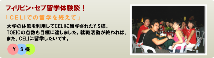 元々、就職活動のために留学したのですが、留学のおかげでTOEICの点数も目標に達しました。就職活動が終われば、また、CELIへ留学したいです。