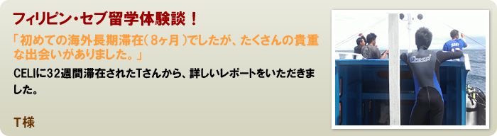 僕自身セブに来るまでダイビングのライセンスは持っていなかったのですが、最初のオープンウォーターライセンスを現地の日本人スタッフがいるショップで取得してから、ダイビングにはまってしまい、アドバンスライセンスをCELIのイギリス人講師でダイビングインストラクターの方にお願いして格安(20000円前後)で取らせてもらうことができました。