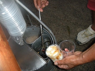 このタホー、早朝(5時~8時)にできたてのバケツ入り豆腐を担いで歩いているタホー売りのお兄さんを呼び止めて購入しなければなりません。値段は小さ目カップで10ペソ(約21円)と激安ですが、上2つのデザートと比べて入手が格段に難しい上に、見た目もどローカルです(笑)