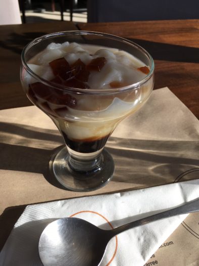 ですが、セブに2店舗あるおしゃれカフェ「Cafe Sarre」では、屋台バージョンを洗練させたようなおしゃれなタホが、エアコンのきいた快適な店内で食べられます!こちらは75ペソ(約160円)。早朝のタホ入手が難しい方は、ぜひ試してみてくださいね。