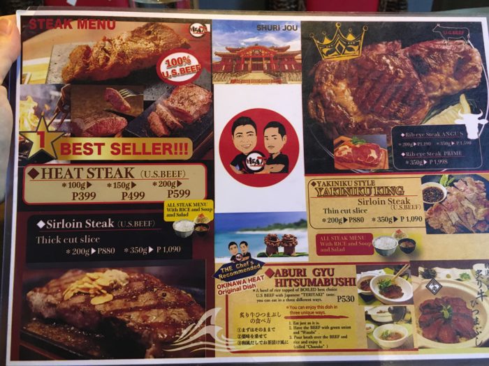 沖縄ヒート・アヤラモール・セントラルブロック店のメニュー。