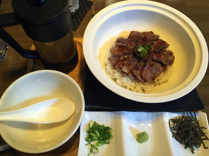 そしてこちらが、私のお気に入りメニュー「炙り牛ひつまぶし」。530ペソ(約1,113円)です。