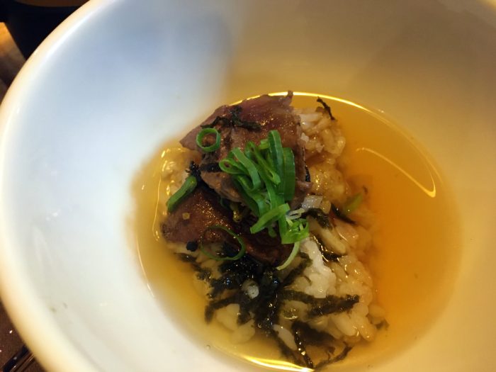 牛肉は柔らかくミディアムレアで仕上げてあるのですが、しっかり焼き目もついていて香ばしいです。厨房で作っている様子を見ていると、ごはんに載せた後バーナーで炙っているようでした。