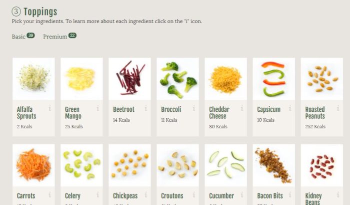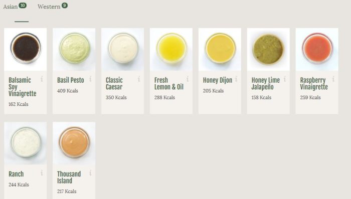 さらに、Create Your Ownという一から自分好みのサラダを作れるシステムもあります。40~60の素材と、20以上のドレッシングから選べて、好きにカスタマイズができます。