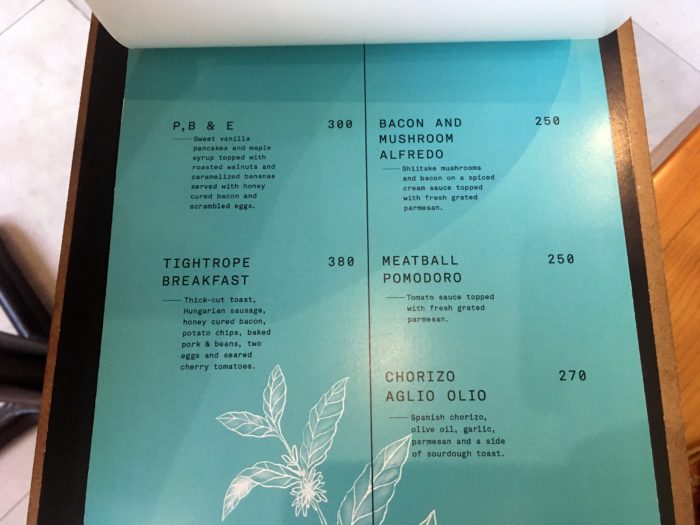 300ペソ(約630円)のモーニングは、「スイートバニラパンケーキのメープルシロップ添え、ローストしたくるみとキャラメリゼしたバナナ、カリカリベーコンとスクランブルエッグ」なんですが、コーヒーが美味しかっただけに期待できそうです。早起きしてタクシーで行きたいです。