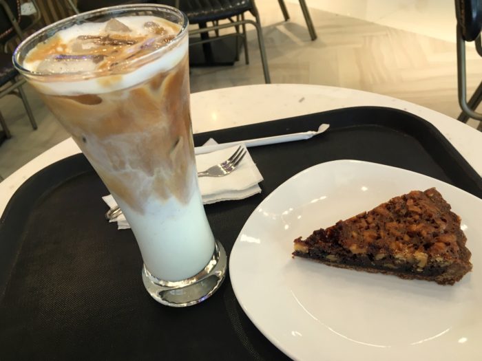 「チョコウォールナッツパイ」はケーキというよりシリアルバーのような味と食感でしたが、アイスカフェラテが美味しかったです。