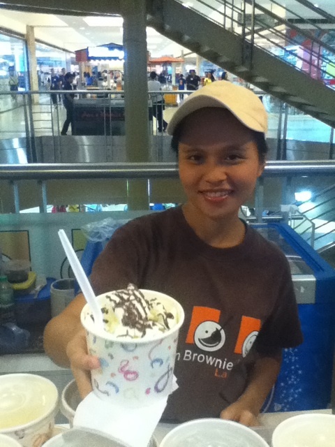 スタンド型店舗のウォームブラウニーは95ペソ(約206円)。お買い物のついでに買って、ベンチで食べるなんてこともできます。
