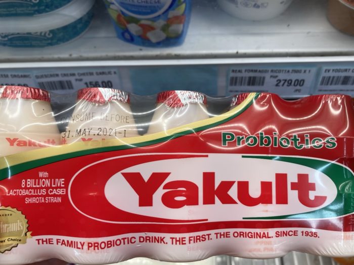 以前から一部のスーパーやコンビニでひっそりと販売されていましたが、コロナが流行ってからは、セブのいろいろなスーパーでヤクルトが大量入荷されるようになり、とても良く売れている印象があります。
