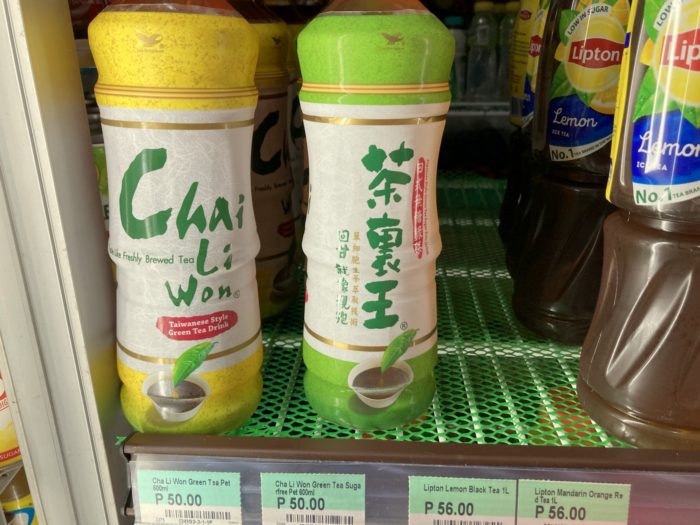 そんなセブで、唯一買える無糖のお茶が、日本食材店「町屋マート」や「三河屋」で買える輸入の「おーいお茶」か、こちらの台湾製「Chai Li Won(茶裏王)」600mlペットボトル50ペソ(約109円)です。
