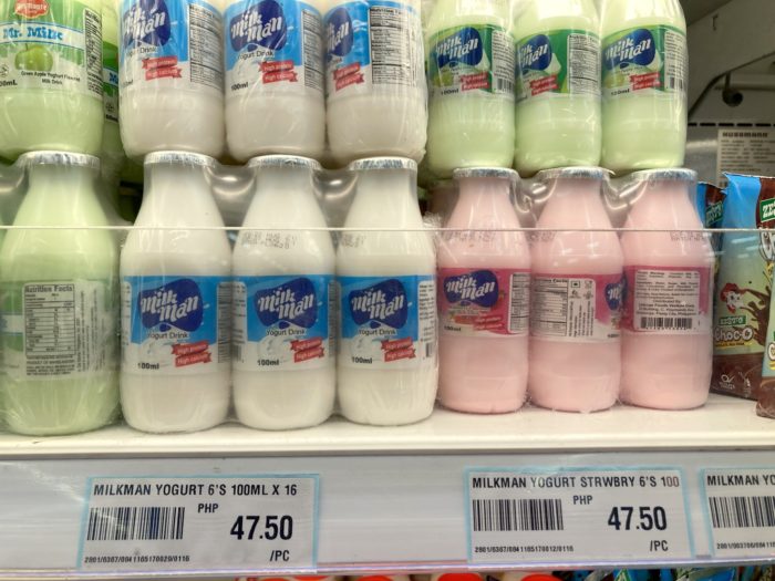 こちらの「Milkman」47.5ペソ(約104円)は、100ml×6個パックとヤクルトよりも量が多いのに安く、イチゴ味とメロン味もあり、お店によっては売れているようですが、一度試しに買ってみたら、人口的な甘みが強すぎて、乳酸菌のメリットより糖分のデメリットの方が大きそうだったので、二度と買わないと決意しました。