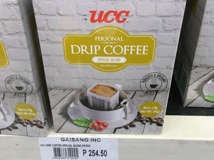 UCC Special Blendドリップコーヒー:8袋254.5ペソ(1パック31.8ペソ=約70円)
