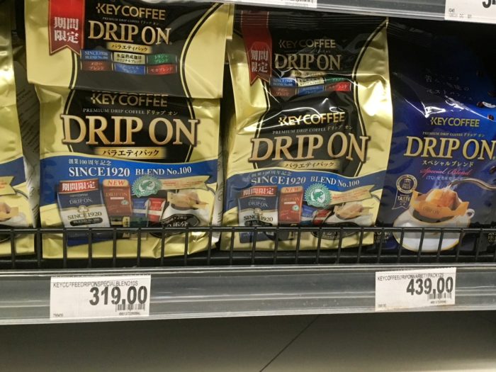 キーコーヒー ドリップオンバラエティパック:10袋319ペソ(1パック31.9ペソ=約70円)