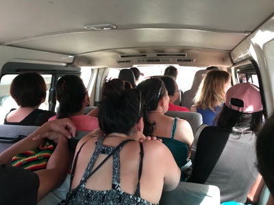 バンがいっぱいになったら出発するのですが、休日だと利用者も多いので10分もかからず、出発できます。パンパンに詰められるため狭いです。
