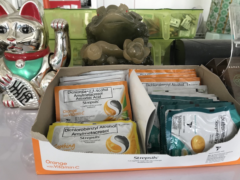 こちらはのど飴。週末に出掛けられて車の排気ガスなどで喉を痛める方が実は結構いらっしゃいます。フィリピンでのど飴と言ったらこちらのStrepsilsが有名。学校の近くで手に入るのは嬉しいですね。一袋68ペソ〜(約142円)。