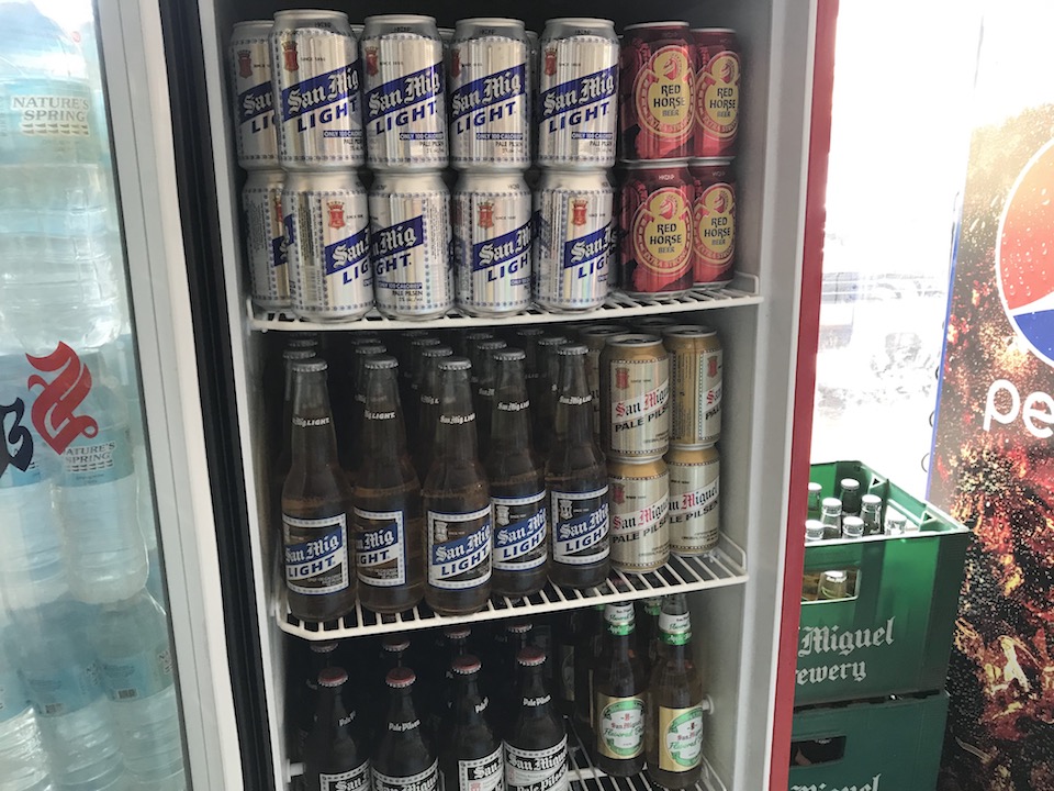 ビールは50ペソ〜(約105円)。他にも多種多様なお酒が置かれています。