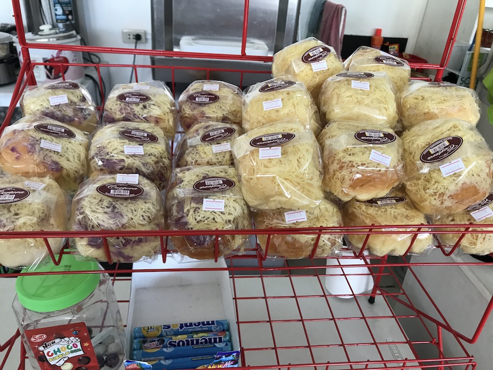パンはウベ味が32ペソ(約67円)。プレーンが31ペソ(約65円)。上にチーズがのっています。