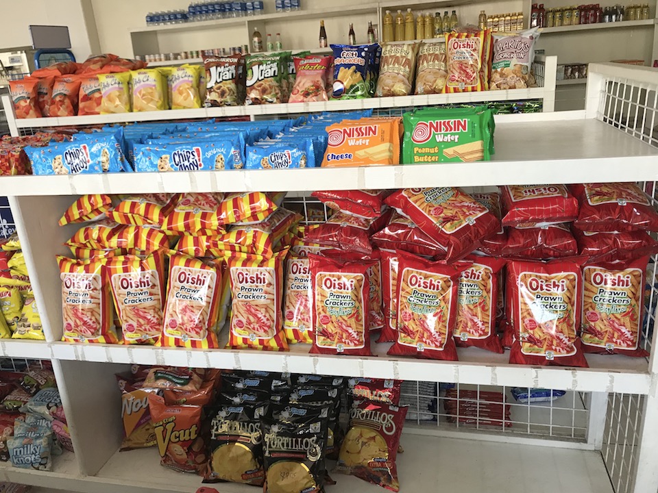 かっぱえびせんのようなお菓子が21ペソ(約45円)他のスナック菓子もほぼ同じ価格帯です。