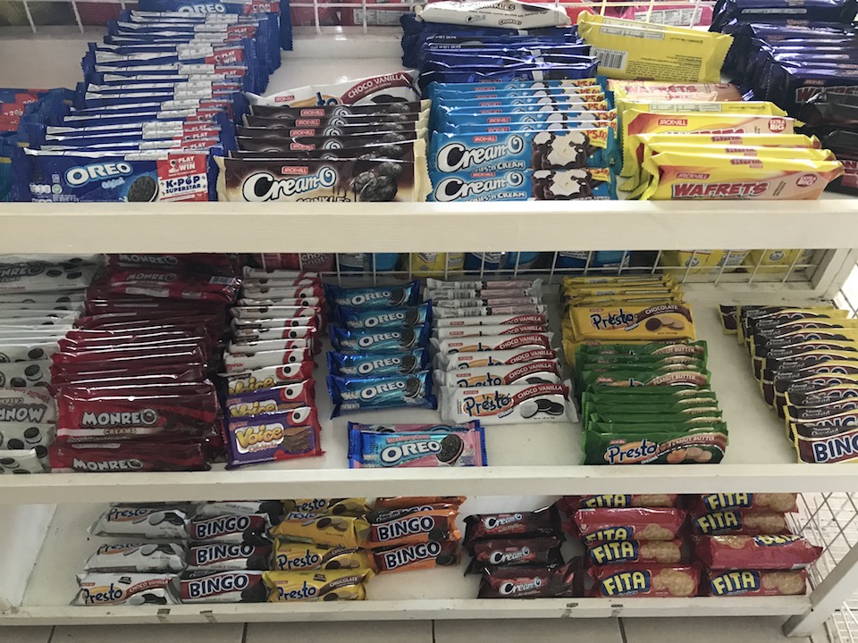 クッキーやクラッカーは7ペソ〜(約15円)
