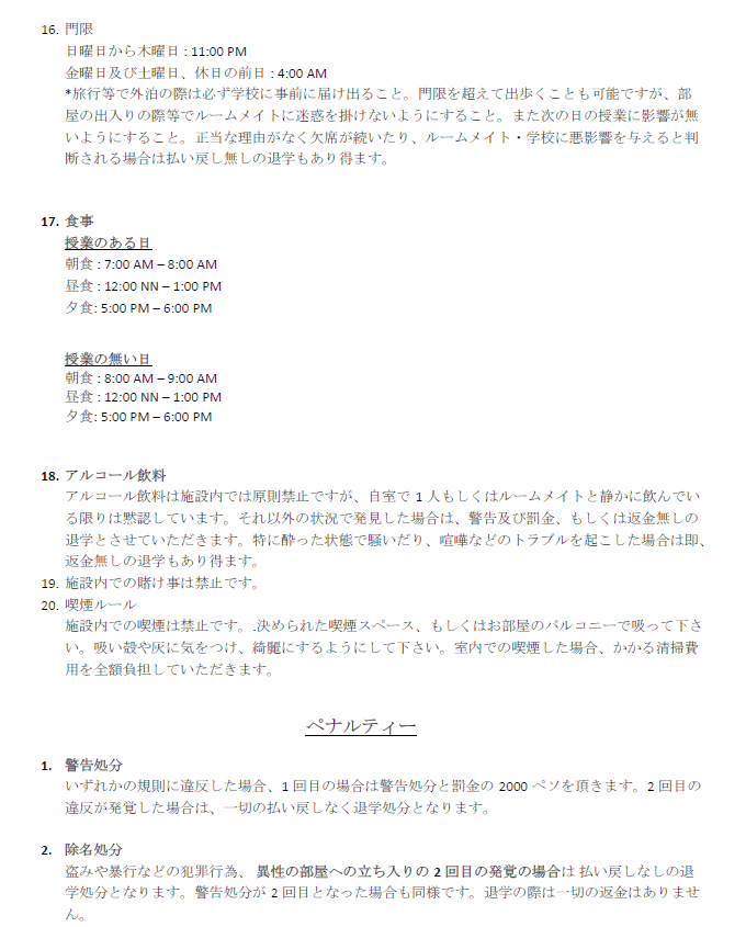 ※学校の情報・規則などは変更される場合がありますので、あらかじめご了承下さい。